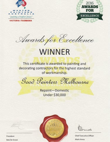 2014, 2015, 2016, 2017 MASTER PAINTERS AUSTRALIA AWARD FOR EXCELLENCE